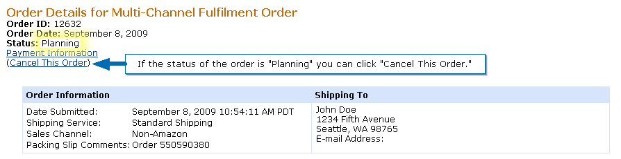 在多渠道配送订单的订单详情下,单击 “取消此订单”。