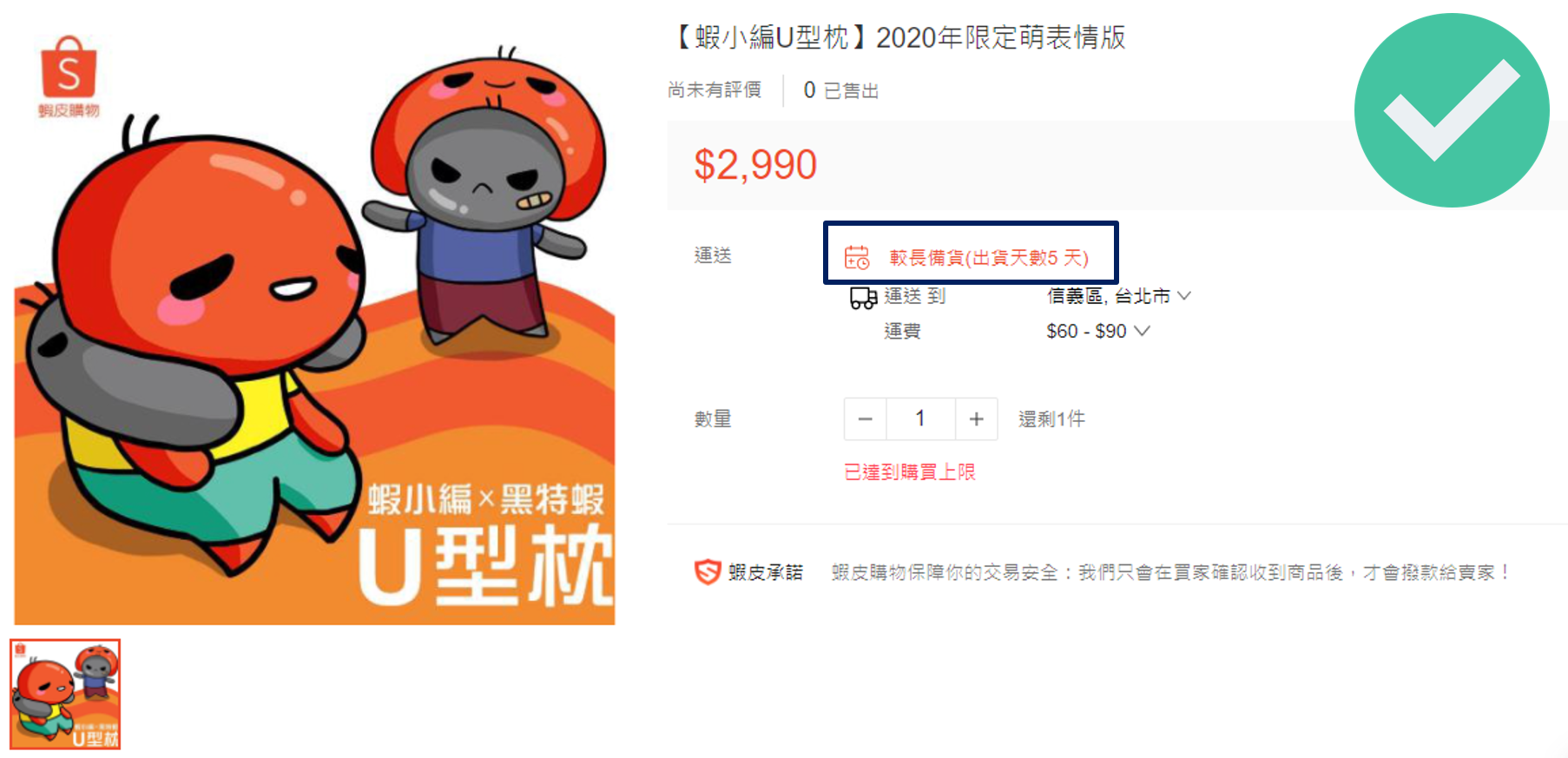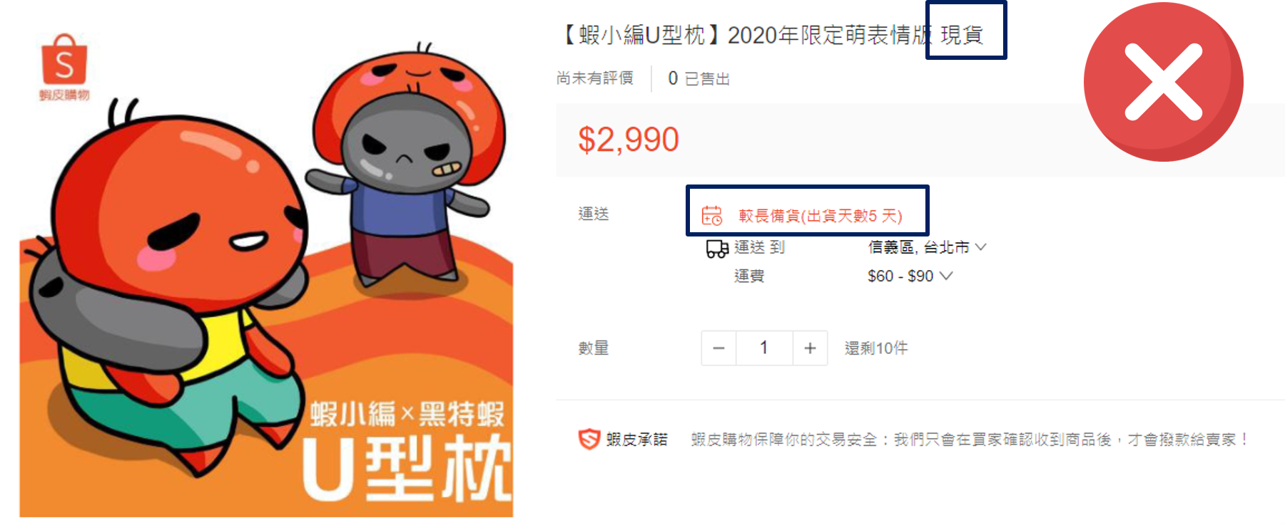 为确保商品页面说明和买家体验一致,您的商品页面叙述需要符合现货规范,即「现货商品备货天数不可超过3天」。