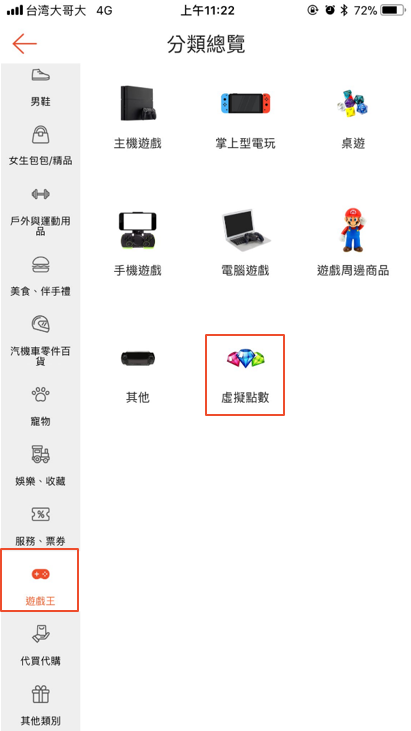 1. 歸類在虛擬點數類別下的商品,不會出現在搜尋結果與賣場中