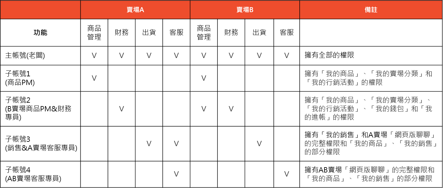 若您非商城賣家,也可以前往「賣家加值服務中心」購買企業帳號權限管理功能。