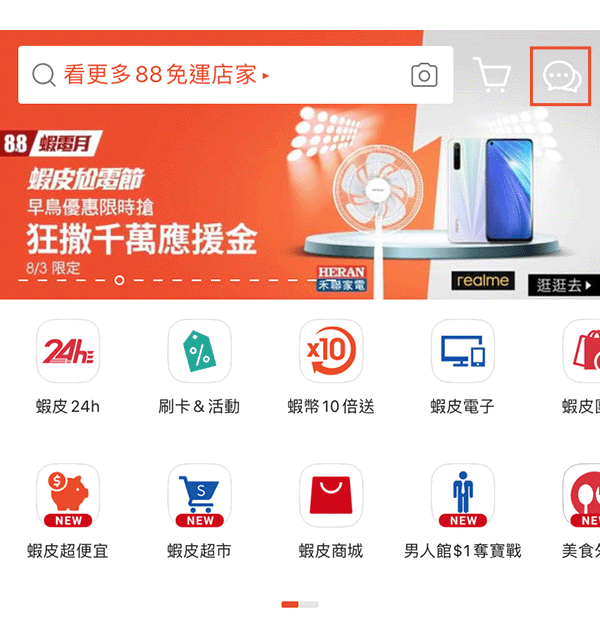 您可以进入虾皮APP点选右上角聊聊按钮,即可透过APP管理聊聊