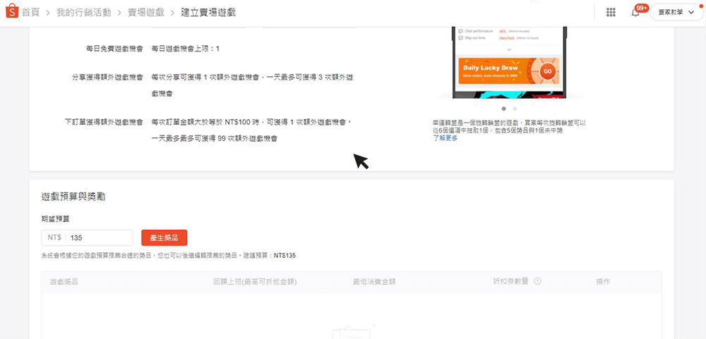 「賣場遊戲」是賣家中心裡的一個行銷工具,它能讓您在賣場中建立遊戲和玩家互動。