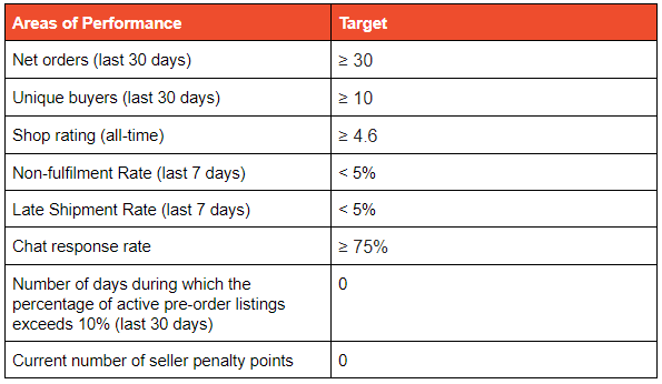 If a shop's performance fails to meet one of these targets, the Preferred Seller status will be removed.