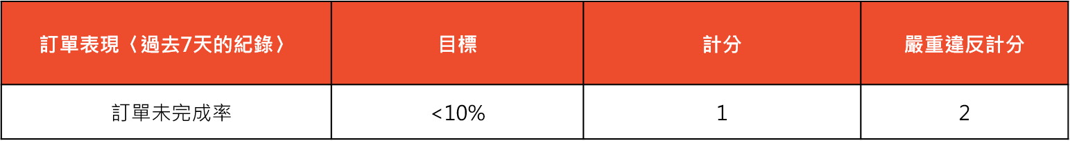 過去7天內,不論您的總訂單數為幾筆,您的訂單未完成率必須低於10%。