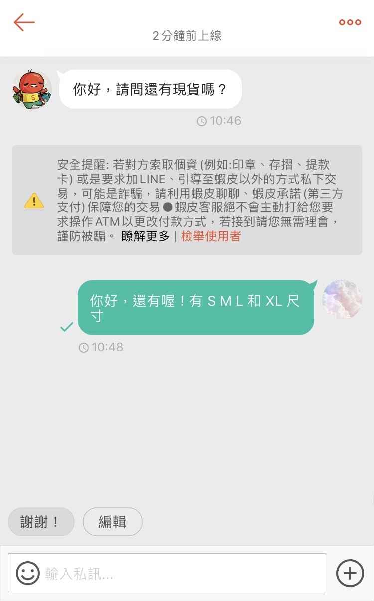適當地回答買家的疑問,並在需要時提供訂單或是商品詳細信息。