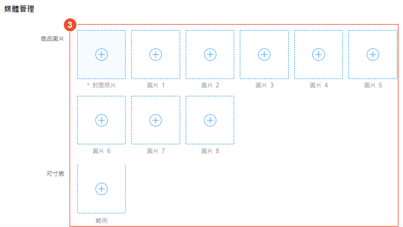 ●您可以將正在進行的活動或是商品情境圖製作成為賣場封面照片且可於上傳時使用圖片編輯器將圖片裁剪至合適的大小(最多能上傳5張圖片或影片)