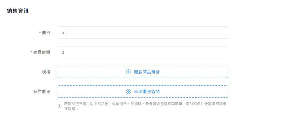 定義:商品規格:當您要上架的商品有不同的規格(例如:顏色、尺寸)時, 則會需要使用商品規格功能