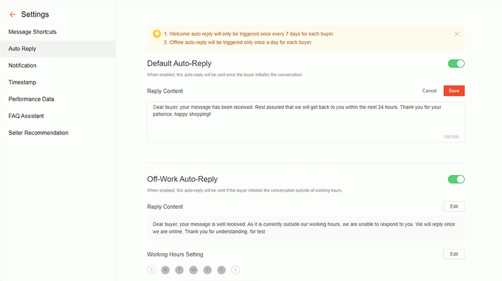 You can provide prompt customer service through pre-saved messages, as a lack of response may cause the shopper to not make a purchase.