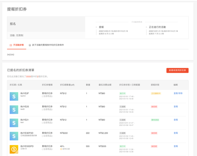 3.在提報折扣券之前,請先詳閱活動說明及賣場和商品限制,確認您的折扣券符合參與活動之規範
