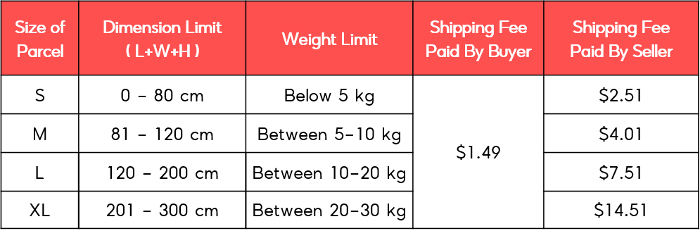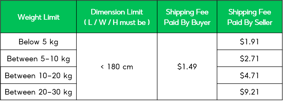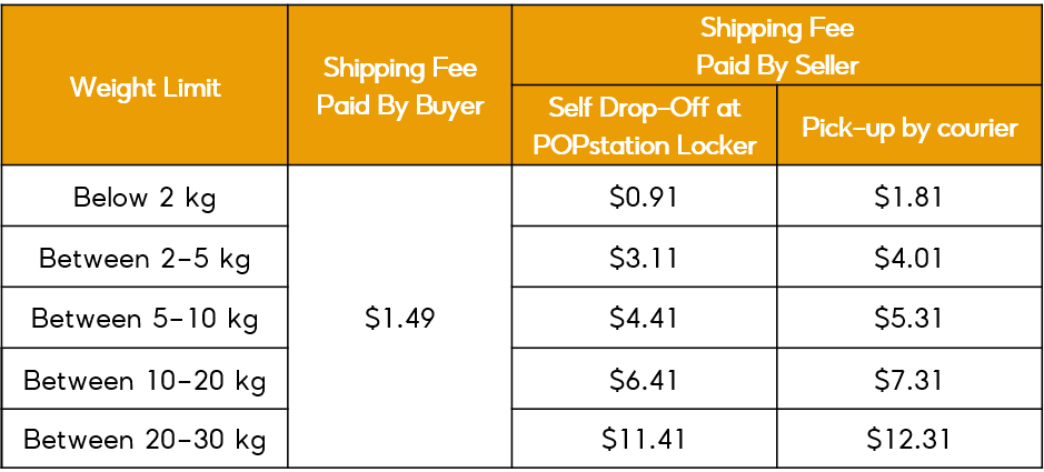 *Sellers who opt in for Pick-up by courier service will have to pay the higher shipping fees regardless of whether they use Self drop-off or Pick-up service in the future.
