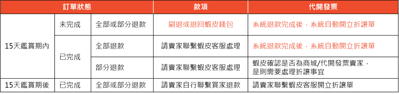 ※如果賣家要蝦皮開立「折讓單」,請於進線客服的時候備註清楚