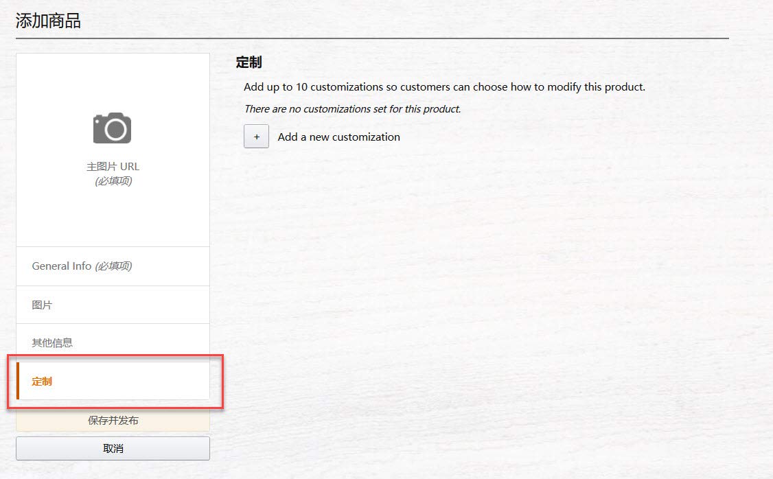 当定制选项不会影响商品外观或价格(例如尺寸或颜色)时,或者使用字母或城市字母缩写图案来装饰茶巾或杯垫等商品,您将使用定制选项,而不是创建单独的商品信息。有关详细信息,请参阅 Amazon Handmade: 定制选项。