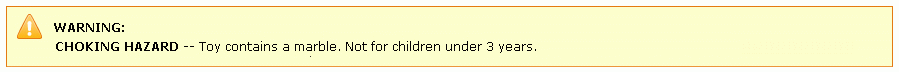 根据 2008 年《消费品安全改进法案》和《联邦有害物质管理法》的要求,面向 12 岁及 12 岁以下儿童销售的玩具和游戏商品的包装上或特定广告中应标注适当的关于窒息危险的警告声明。